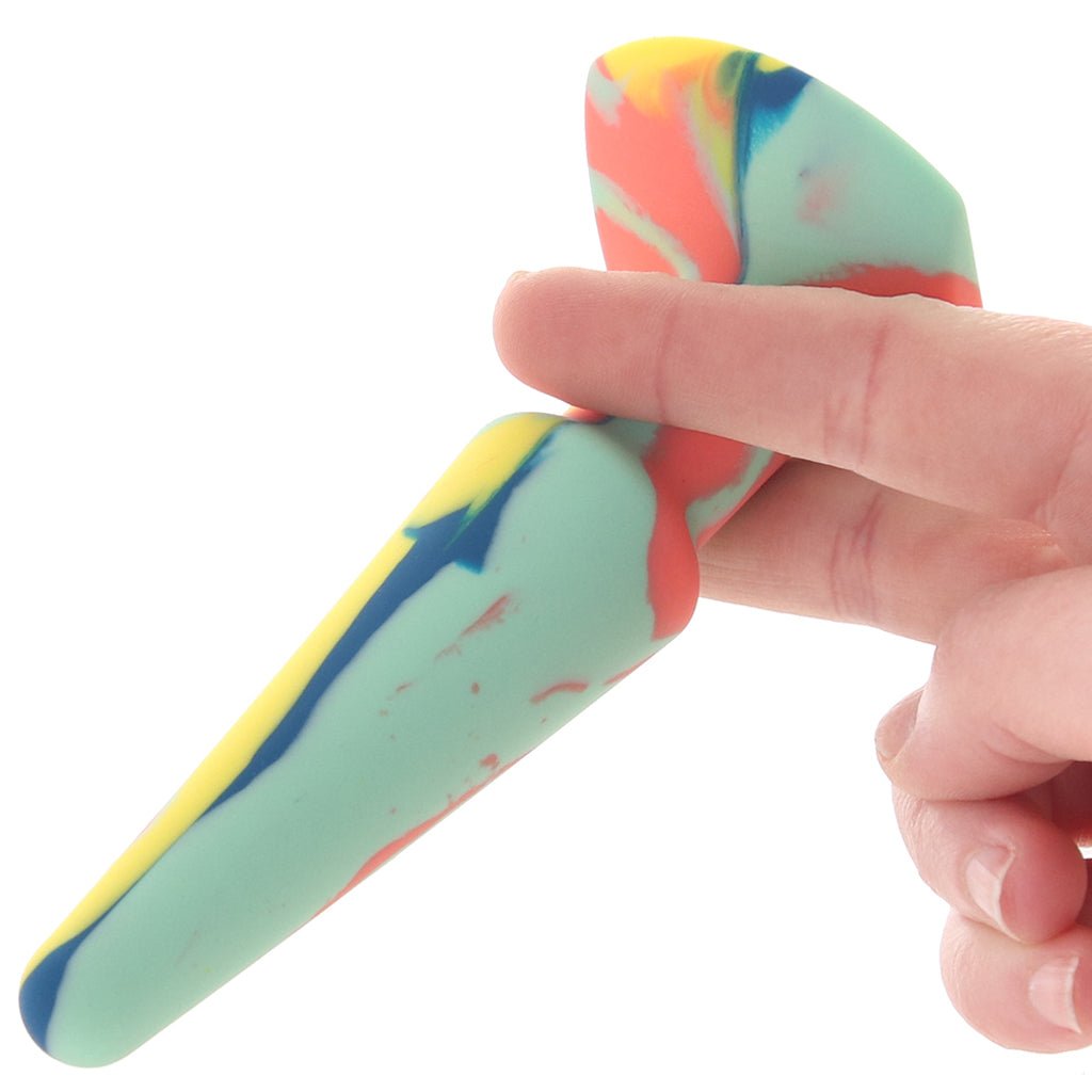 Way back in the summer of 1990, we learned that groove is in the heart. A truly delightful band called Deee-Lite told us so. In the summer of 2023, we’d like to inform everyone that groove can also be in your butt! All you’ll need is a multi-colored, tie-dye-inspired plug, like the A-Play Groovy 4 Inch.
