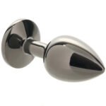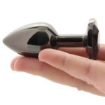 In seamless silvery metal, the Small Black Gem Anal Plug is safe for sensitive skin. Extremely easy to clean, a must-have feature of any good quality anal toy, this plug will be squeaky clean after a thorough scrub using warm soapy water or a good antibacterial toy care fluid/foam. Compatible with all lubricant types. Avoid abrasive surfaces to keep this plug in play-ready shape for the long haul.