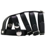 In supple faux leather, the three buckled (easily adjusted) bands circle the cock, helping to constrict blood flow for an always-impressive erection. The ball strap’s grip can also slow and help control ejaculation, intensifying the big finish when the time finally comes. An attached lead D-ring can be connected with most clip-style leashes, weights and other restraints. Lead accessories not included. Fully adjustable.