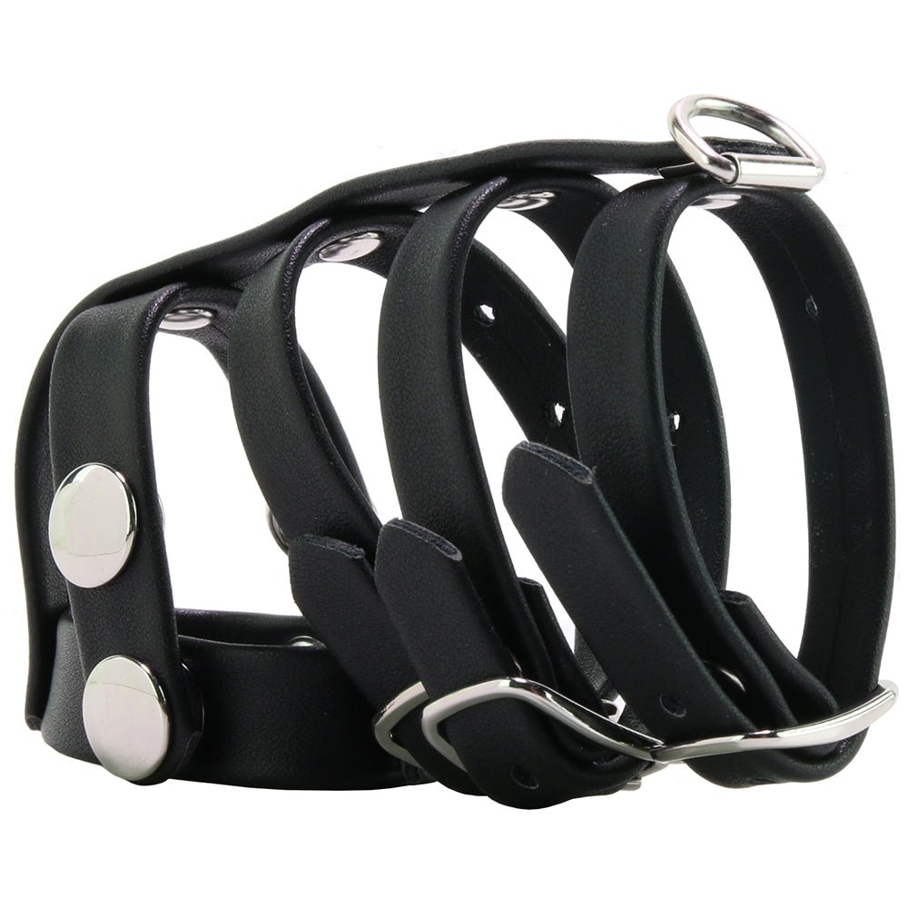 Displaying a cock in question to very sexy advantage, the Triple Cock and Ball Strap with Leash Lead grips tight over the shaft as an adjustable snap strap loops behind to tug the balls away from the body.
