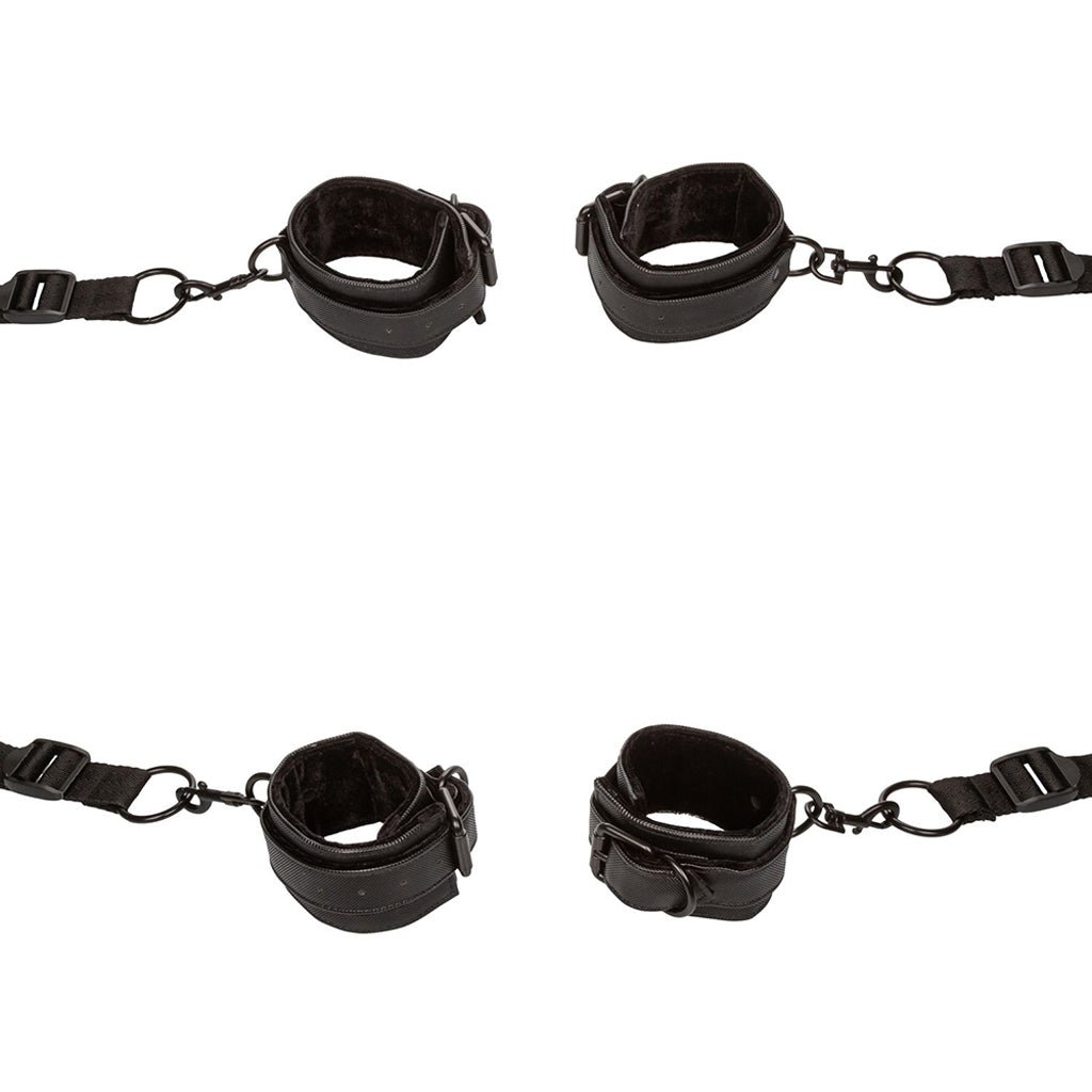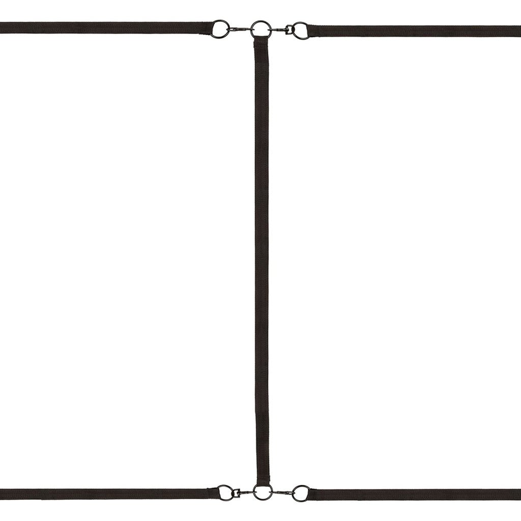 Don’t get us wrong, out-in-public, hotel room or other sneaky sexy shenanigans can be tons of fun, but sometimes, there’s just nothing like your own bed for down n’ dirty doings. Helping turn your comfy haven of sleep and sex into a kink-ready playground of bound-up potential is the Boundless Bed Restraint system from CalExotics.