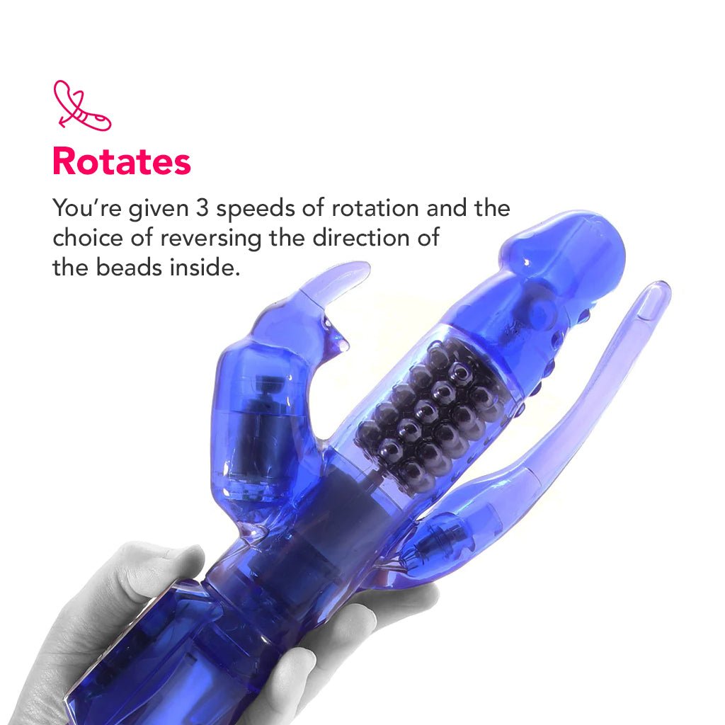 Lavishing lots of love on a trio of erogenous zones, CalExotic’s Delight rabbit adds sexy anal stimulation and a classic outer bunny to a shaft packed full of sexy rotating beads.