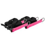 Adjusting to fit just about any mattress, this travel ready little kit includes four cross straps that you’ll position under your mattress or box spring. Once that’s done, pull out the ends and connect them to four bright pink patent tethers with rugged O-rings at each end. Those rings hook up to just about any cuff, collar and other bondage gear you love. Adjust the straps and cuffs to your liking, and play away! Cuffs sold separately.