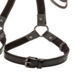 The comfortable, velvet-lined harness buckles over your or their waist and each thigh, holding a triple strand of flowy black chain vertically over the hips. Four sturdy O-rings can be clipped or clamped to cuffs, leashes, tethers, and more – if you’re so inclined!