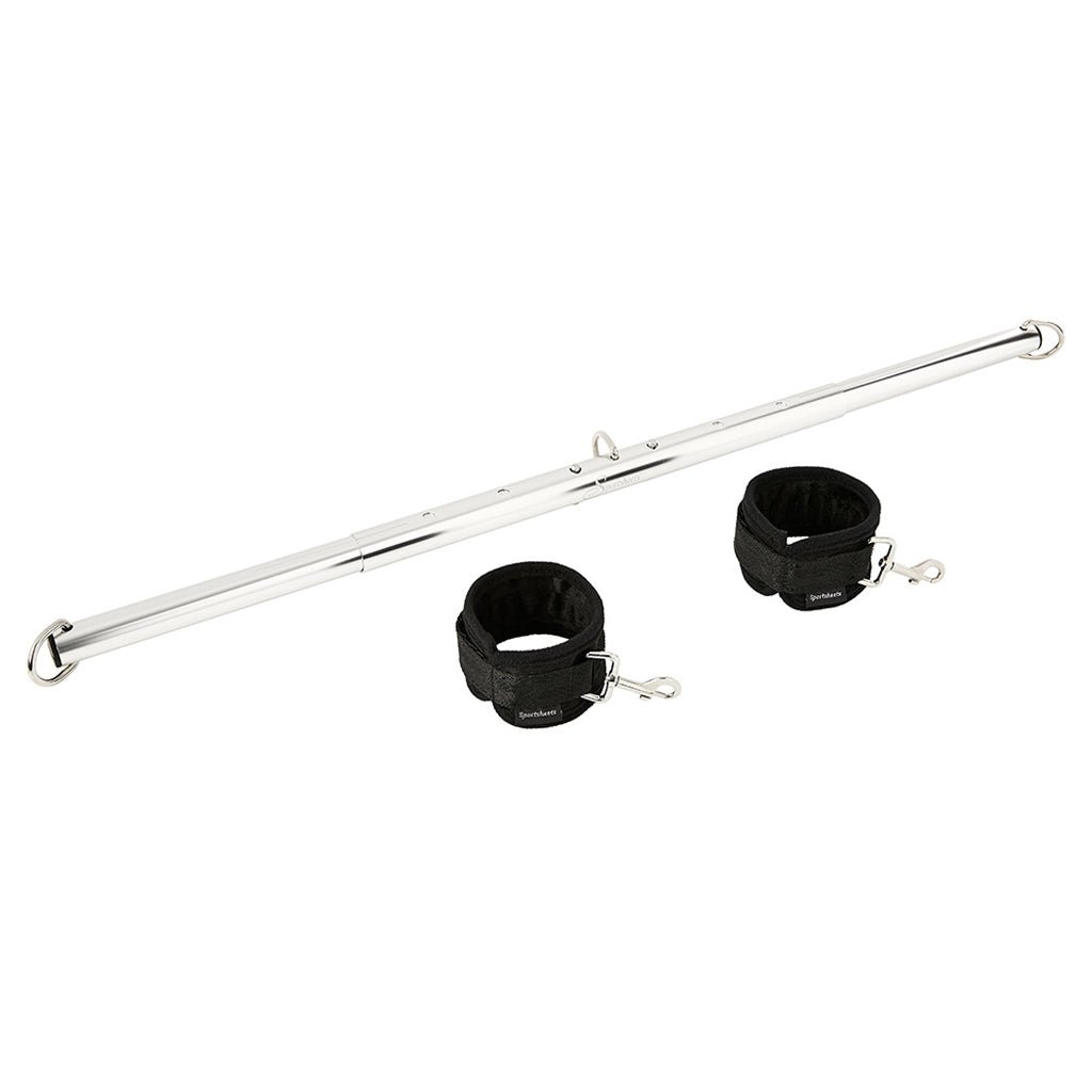Wonderfully sturdy, completely adjustable and absolutely user friendly, assembling in literal seconds, Sportsheet’s Expandable Spreader Bar and Cuffs Set is a fantastically well-made, blissfully versatile bondage must-have