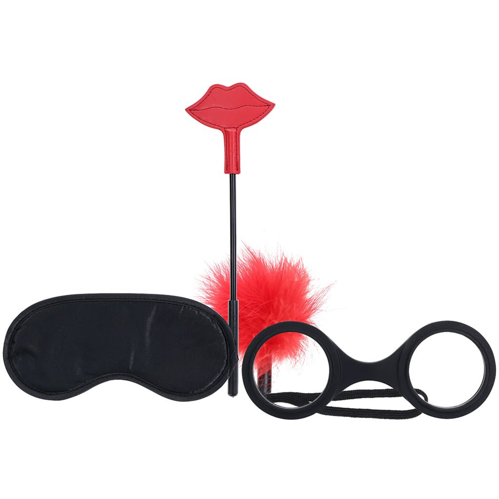Inside, you’ll find four classic tools for steamy mix-and-match fun. Light as a feather (literally), the Tickler glides over nipples, butts, and thighs like a dream. The blackout Blindfold amps up anticipation, while the cute Lips Crop delivers sexy stings and smacks. Finally, a pair of soft Silicone Cuffs bring everything together with a snug little snap.