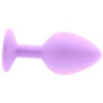 Inside, you’ll find three classically tapered plugs in purple silicone. They’re each shaped for easy insertion, quick adjustments and removal, plus each features a sexy glittery gemstone at the base, but the similarities stop there. Size-wise, they’re very different, all the better to help you a) work up to or b) dive right into butt play bliss.