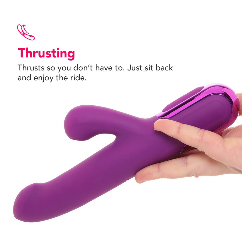 Sensation-wise, you can play with thrusting and vibration separately, or you can (and should!) combine them for an orgasmically equalized experience.