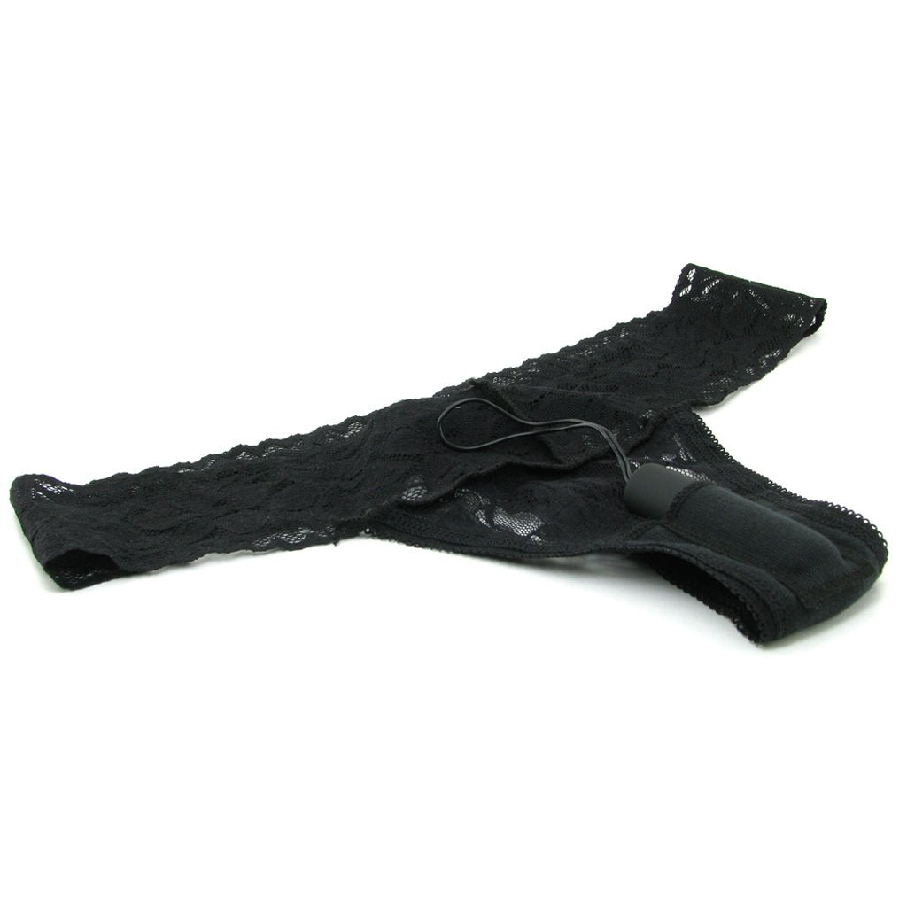 As if these gorgeous black lace panties weren’t sizzling enough as is, this pretty pair hides a deliciously sexy secret in a tiny pocket at crotch level.