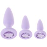 In light purple silicone, the First Time Crystal Booty Anal Plug Set is hypoallergenic and safe for sensitive skin. Your Plugs will be squeaky clean and ready to play after a thorough scrub using warm soapy water or a good antibacterial toy care fluid/foam. You will, of course, be using lots of lubricant with this and any anal toy, please pick a favorite water based lube to keep your Set in tip-top shape.