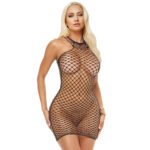 Up top, this sleek diamond-net mini features a high neck with some contrast mini net; down below, the mini hugs all your curves. Pair it with some other favorite lingerie pieces, or rock it solo.