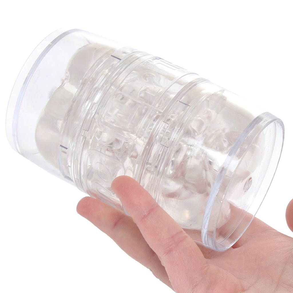 Tucked inside a compact little case, you’ll find a double-sided sleeve in crystal clear Fleshlight-patented SuperSkin. Pop off the end caps to dive into either the pretty lips or the tight butt, or use it as a blowjob booster; either way, you (or they!) will love the exclusive Stoya texture.