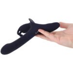 A button at the base or on the included remote activates and cycles through nine vibration modes synced between three motors in the bunny’s shaft, ticker, and base.