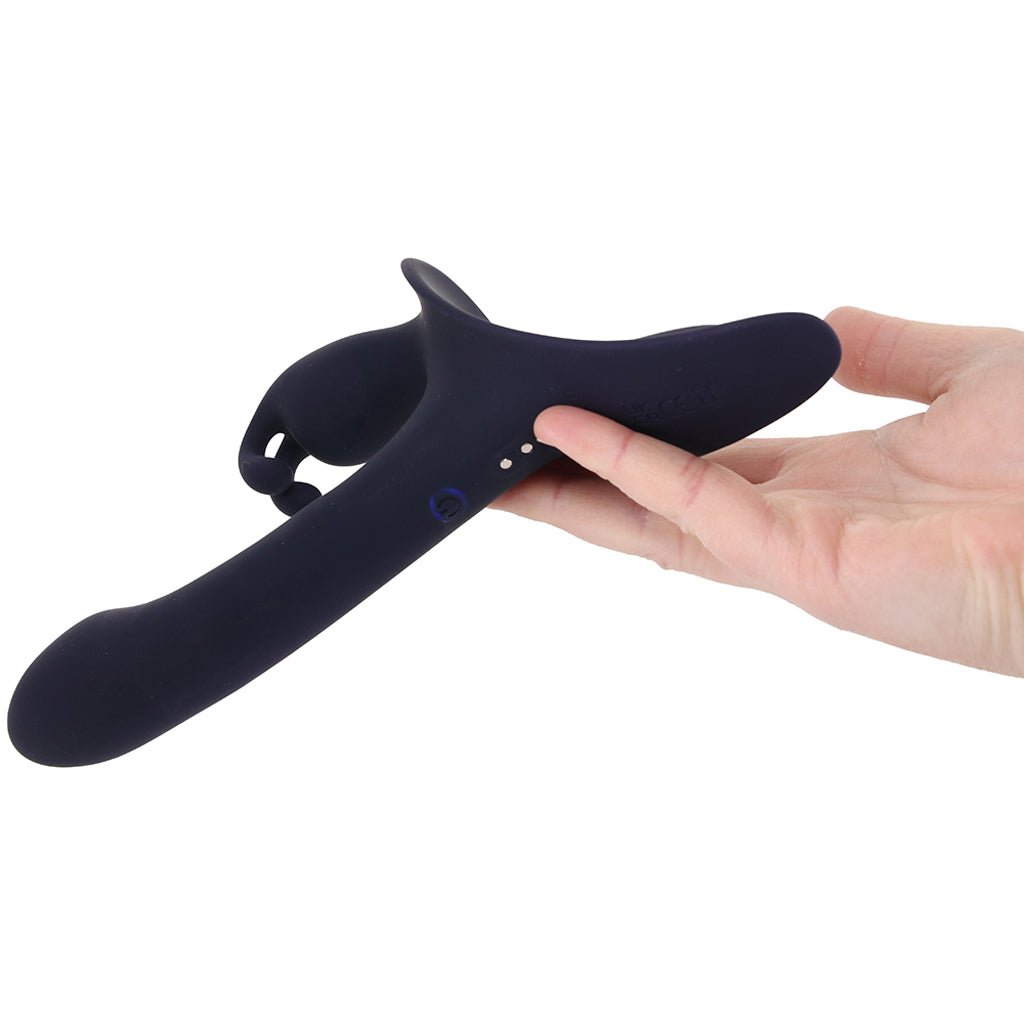 On one side of your Giving, you’ll find a classic bunny vibe in super-silky silicone. On the other, a curvy base has a bumpy clit/outer sweet-spot-targeting swell. Whoever’s wearing the harness will feel it throb while their partner gets filled up by the bunny. Win/win!