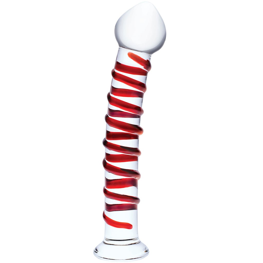 This glass dildo’s swollen tip, gentle curve, and sturdy, twist-textured neck make all sorts of massage, thrusting, and controlled maneuvers easy. Feel free to dive deep—the wide base helps prevent any too-far slips.
