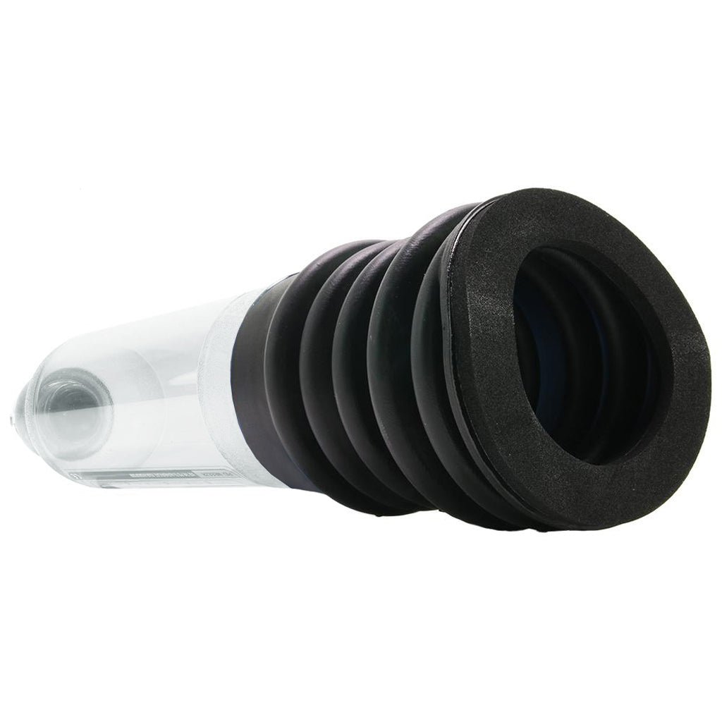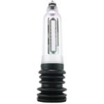 Your Hydro7 consists of an extra sturdy polycarbonate cylinder marked off into clear measurements, a pliable, skin safe synthetic rubber gaiter base and stainless steel spring release valve up top. This pump was tailor made for penises from 3 to 5 inches (18-13cm) in erect length.