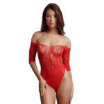 Release your inner goddess with this red crotchless teddy with opaque bottoms and lace pattern top with 3/4 sleeves. The top has a luxurious feel, thanks to the rhinestones. It is perfect for a seduction outfit that’s bound to get jaws dropping and temperatures rising! One size fits most. Hand wash cold, line dry. Never iron, bleach or dry clean. 92% Nylon, 8% Spandex.