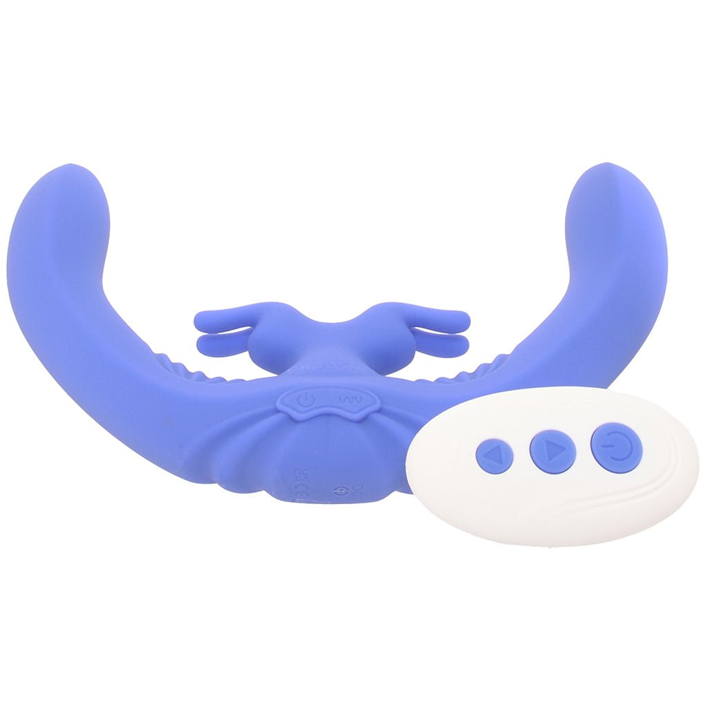 Three motors drive each penetrator and the center bunnies through ten speeds and patterns of pure sensation—control them with two buttons on the vibe or the included long range (35′ range) remote.