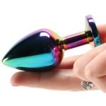 Home Anal Toys Anal Butt Plugs Medium Aluminum Plug with Rainbow Gem in Multicolor