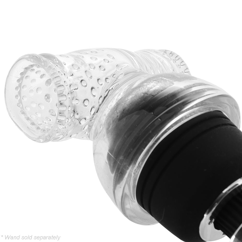 Supple and sexily transparent, the Accessory slips securely over-top of your Wand’s default tip. Ribbed at one side and lined in teasing nubs at the other, the stroker sleeve transmits unique sensation direct to your or your partner’s shaft and tip. Stroke it back and forth, or just hold it in place wherever it feels best.