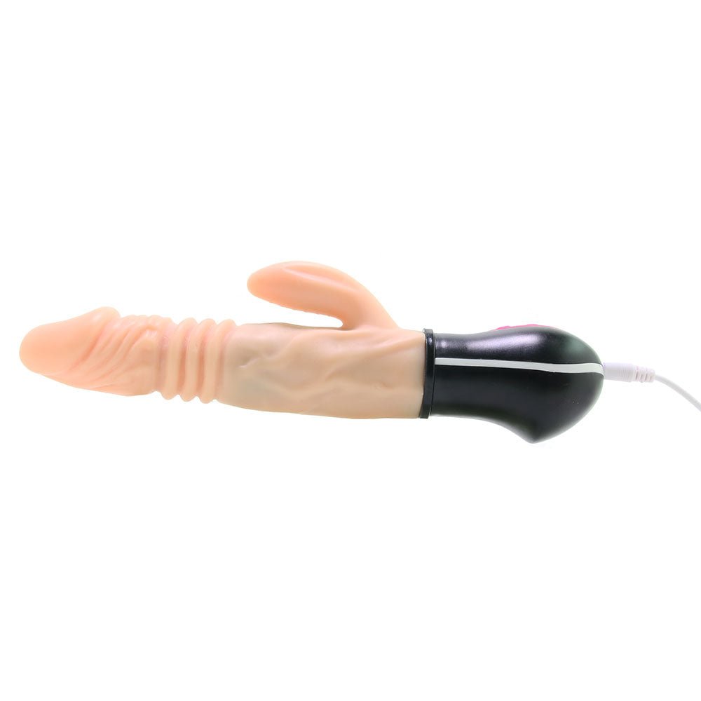 The combination of deep, rumbly vibration and a shape that positions all that stimulation against inner sweet spots is a match made in pleasure heaven for many vagina owners. The Rotating Thruster takes that fact into full account. Aside from a over-the-top lifelike veiny shaft and up-reaching clitoral stimulator, the Thruster features extreme power. And we DO mean extreme! The shaft offers you or your lucky playmate deep, rhythmic thrusting along with dizzy, head-spinning circular vibration. Honestly, you’ll just have to feel it to believe it!