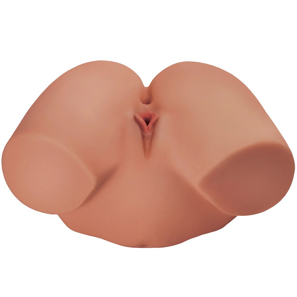 Between squeezable cheeks and rounded hips, you’ll find a tight, soft-lipped pussy and snug, puckered butt. Both feature separate, massively stimulating textures inside (they join up eventually), so feel free to Bang(er) both. A closed-off design naturally creates suction as you thrust, plus, it contains the aftermath. No muss, no fuss.