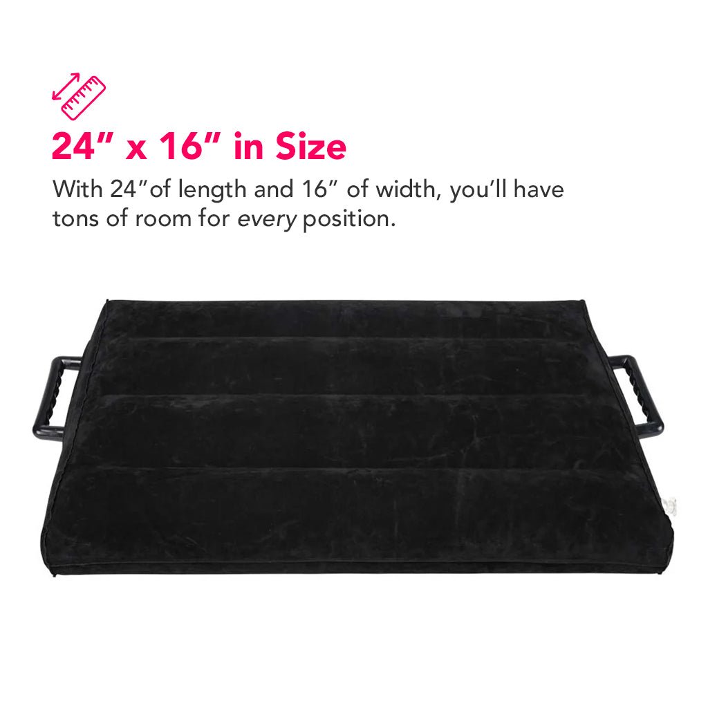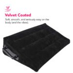 Once it’s blown up, the versatile wedge shape can help prop up your/their head, neck, or hips, cushion kneeling positions, or serve as a comfortable, velvet-coated sex lounger. Grab hold of the attached handles for even more stability.