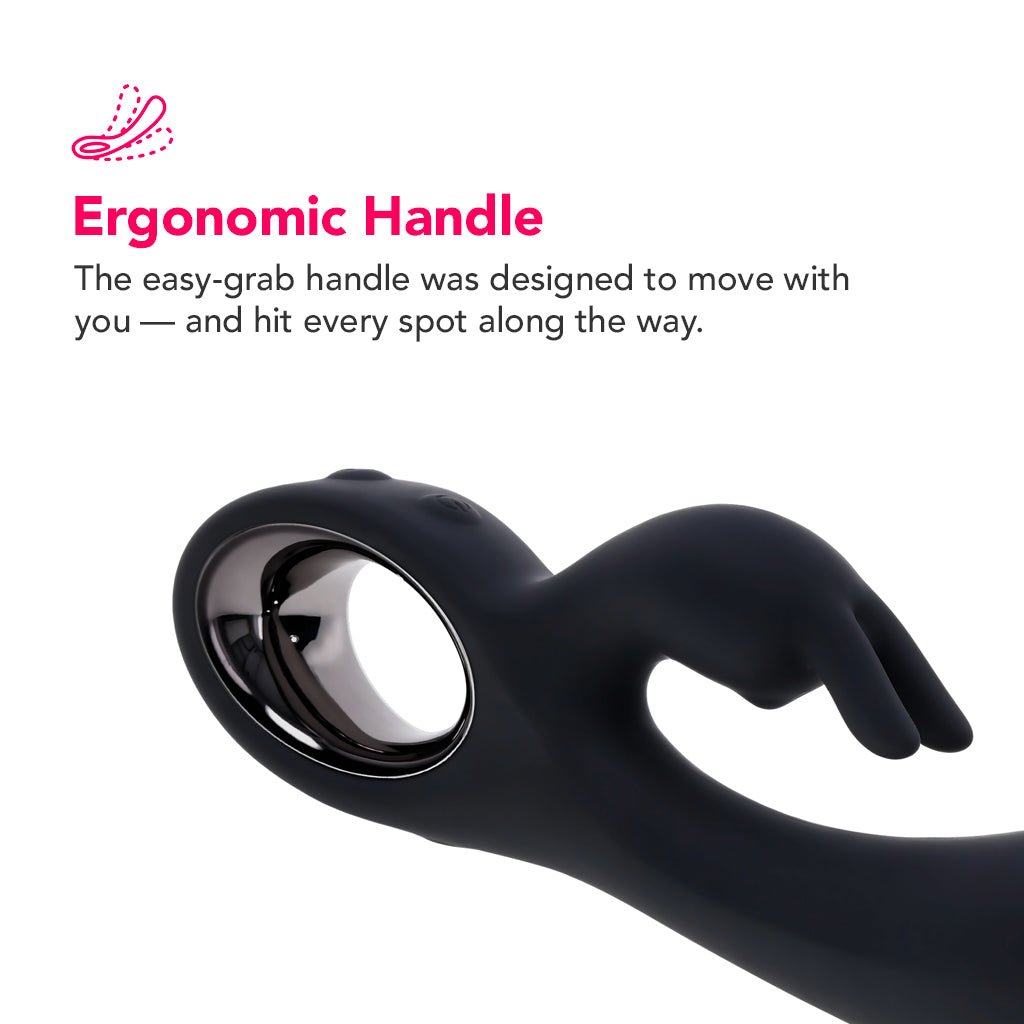 This classic bunny comes fully equipped with a swollen, super-flexible penetrator, a tickly bunny outer stimulator, and tons of power. Grab the sturdy ring handle to direct the dynamic shape to sweet spots inside and out.