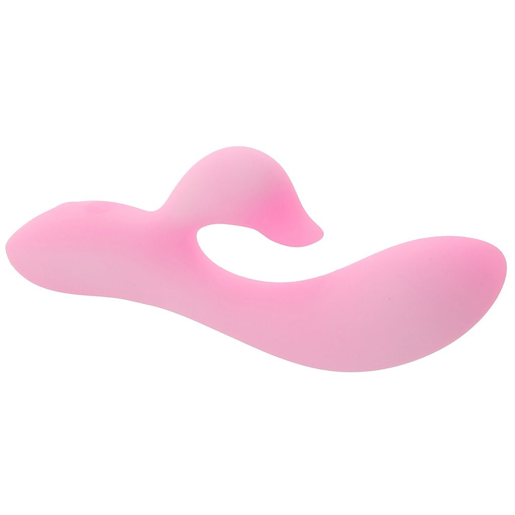 Up top, Dawn is smooth, softly tapered, and all ready to slip and slide inside. The penetrator’s curvy swell targets G-spots, A-spots, and inner pleasure places in general, while a slick little stimulator below takes care of outer ones. This little rabbit is VERY flexible, so it’ll bend and move as you do for maximum contact.