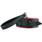 Securing around the neck, the Collar in Saffron’s signature red and black vegan leather adjusts to fit just about any neck size. Around front, a sturdy D ring connects with the included 55″ (139.7cm) leash, but you can also hook up with most universal play gear. Sturdy swiveling hardware at the end of the leash can likewise be used with just about any other collar or restraint. Play safe, friends!