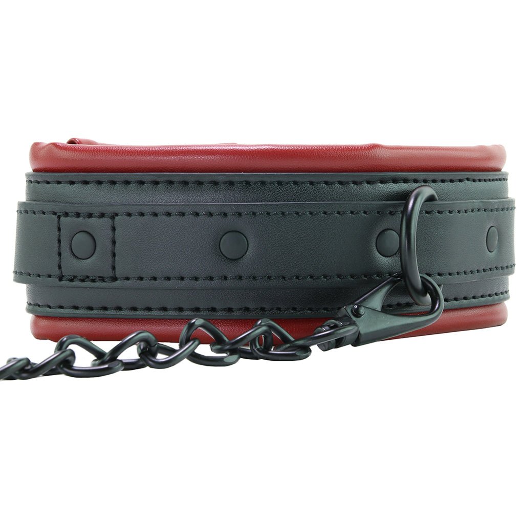 Another great looking and ultra functional play set from the Saffron collection, the Leash and Collar includes a classic padded neck strap plus an extra long chain leash ready to accompany you (or your willing playmate) wherever the night leads.