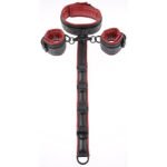 Need a little something new for your collection? Saffron to the rescue! Always ready to test some flexibility and help you play (consensually!) rough together, this versatile set combines a soft vegan leather collar and matching buckled wrist cuffs with a vertical body strap.