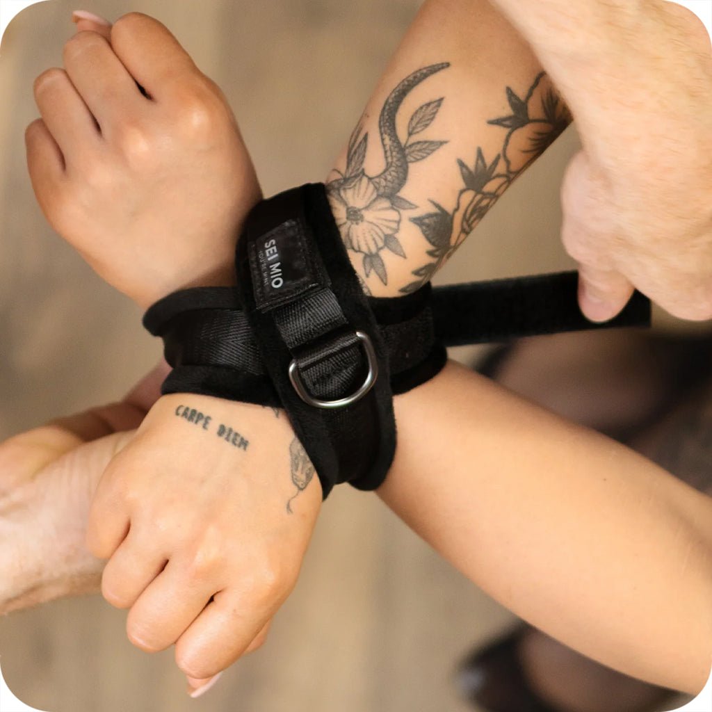 Looking for a sexy and literal twist on a playtime fave? It’s here! Sei Mio’s Cross Purposes Cuffs bind your or your partner’s wrists in an escape-proof (consensual, of course!) crossed position.