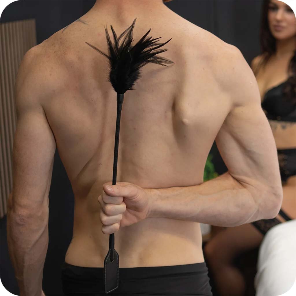 This sexily versatile S & T features lots of length to play with, a supremely soft plume of feathers, and a flat crop tip. You can drag the feathers over their skin before switching it up with a stinging smack, use the crop solo, or tease forever with the softer side. Play your way! Spot clean as needed.