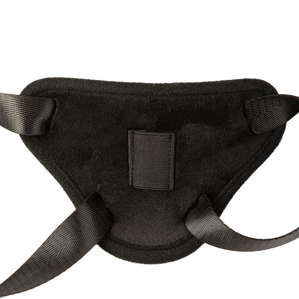 To get into the simple, comfy harness, slip it over your hips and thighs, then tug the strap ends to tighten it up—the open back and crotch work for anybody AND give a partner easy access. Bonus: there’s a little pocket inside for a bullet or mini vibe (not included).