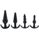 Inside, you’ll find four tapered Plugs in plushy black elastomer. They’ll each offer you and/or your partner easy insertion, quick adjustments and worry-free removal, but the similarities stop there. Each is shaped and sized for a distinct sensation – there’s a classic taper, a bottle-shaped double swell, a triple-beaded version and a big taper/swell combo.