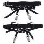 Wipe down the PU, iron alloy and poly Garters with a favorite toy care fluid/foam or mild soap and water when needed. They fit  thighs 16-24″/40.6-61cm.