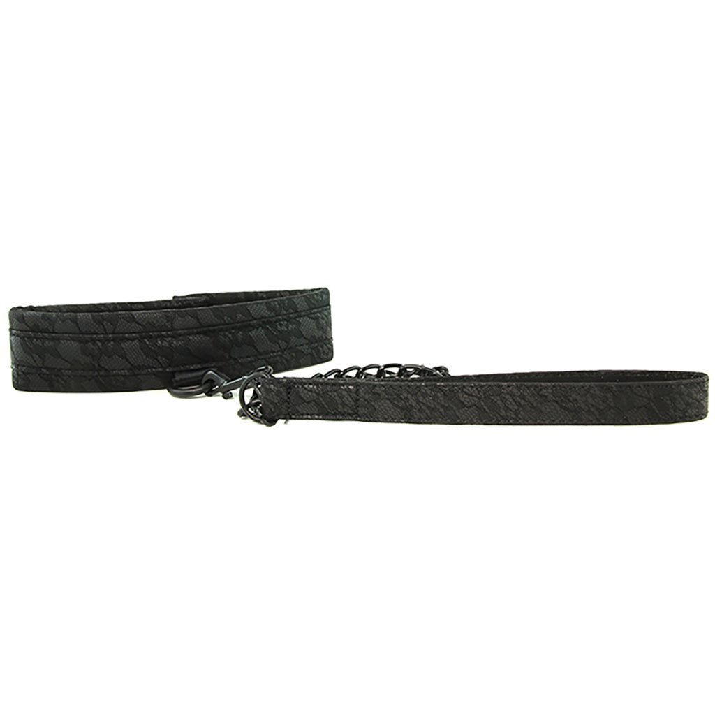 An irresistible piece of high end, fashionable fetish gear from the Sincerely line, the lacy black Collar and Leash duo