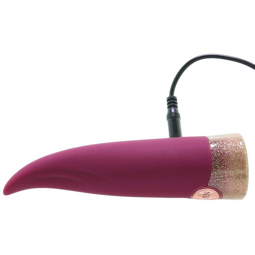 Take your pick from Fling’s seven blissful modes and 5 possible intensities of steady, throbbing and pulsating vibration. Activate and vary the rhythm with a big button at the glittery base, and tap the up and down keys (located at the side of the handle) to speed or slow intensity.