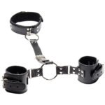 In comfy padded faux leather, the Neck to Wrists Restraints, like the name suggests, secure your or your partners wrists via fixed cuffs to a thick collar above a vertical body-skimming strap. Each piece is fully adjustable, and can be worn to the front or back. Plus, there are two big O-rings just waiting to be hooked up to plenty of compatible gear.