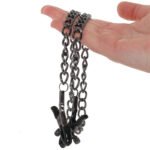 Around the front, you’ll find a hematite connector for the (optional) chained Nipple Clamps and maybe a leash you love. In classic alligator style, the rubber-tipped pinchers clamps adjust to your or their perfect pressure, plus they’ll tug and tease as you move.