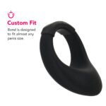 How you choose to play with your Bond is up to you, but first off, you’ll need to put it on. Bond features a curvy, adjustable shape that fits snugly over the base of your/their shaft. You’ll position the smooth, swollen vibrating area behind your testicles in question, with the curve resting against your perineum. Bond’s stretchy silicone band clips easily on and off, so you’ll be able to put it on, adjust or remove it quickly and comfortably. A band extender is included, so you can rest assured that Bond’s fit (a stretchy default 1.5″/3.8cm) will be nice and secure – it’ll be undetectable under clothing and always comfortable.