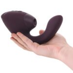 This vibe-meets-suction superstar teams up Womanizer’s 3D Pleasure Air with We-Vibe’s signature deep, rumbly G-spot vibrations for that perfect mix of suction and movement. The curved penetrator flexes with your body, finding every angle without you even trying.
