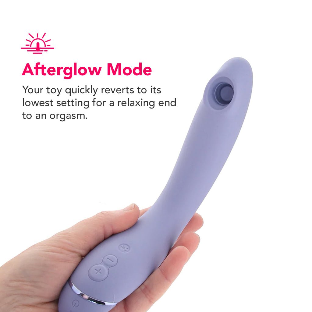 Smart Silence technology is another of the OG G-Spot’s many noteworthy features. Once your vibe has been powered on, Air Pulse and vibration will begin to suck, pulse and throb when and only when the tip is in contact with your/their skin. When it’s pulled away from the body, it’ll stop automatically, and starts back up (at the same intensity, of course) when brought back close. This feature not only improves battery life, but also keeps things nice and quiet. Smart Silence is built right in, but can be turned off, if you’d rather skip it.